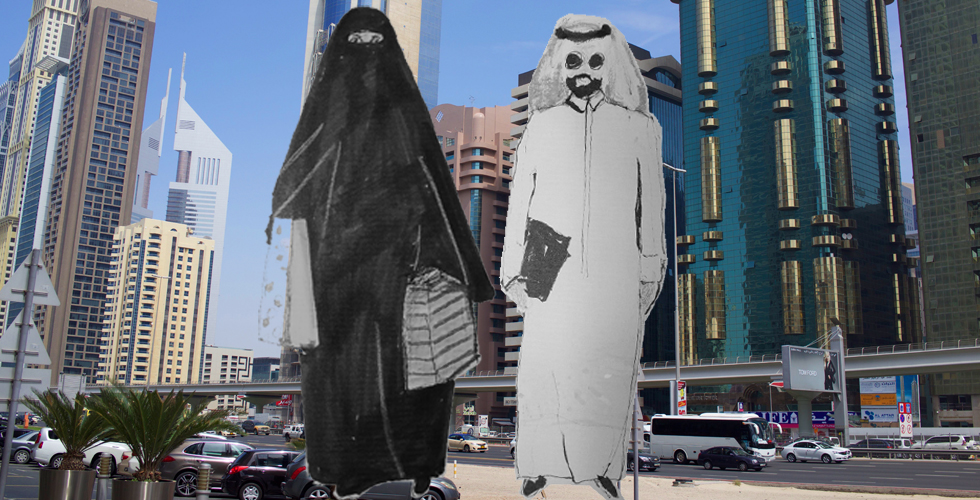 Les hommes sont en Dishdasha et les femmes en Burqa. La plupart du temps, les femmes se baladent en troupeaux.