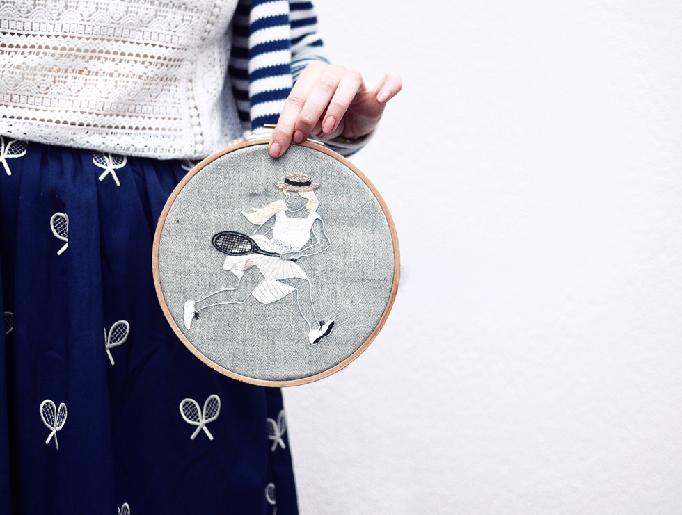 J’ai une passion pour la broderie et pour l’illustration, alors vous imaginez que les broderies de Marion ne m’ont pas laissée de marbre. Le travail de Marion est à cheval entre la broderie et l’illustration. En plus, en tant qu’ancienne styliste, j’ai tout particulièrement aimé le soin qu’elle prenait à broder les vêtements et à imiter les textures.