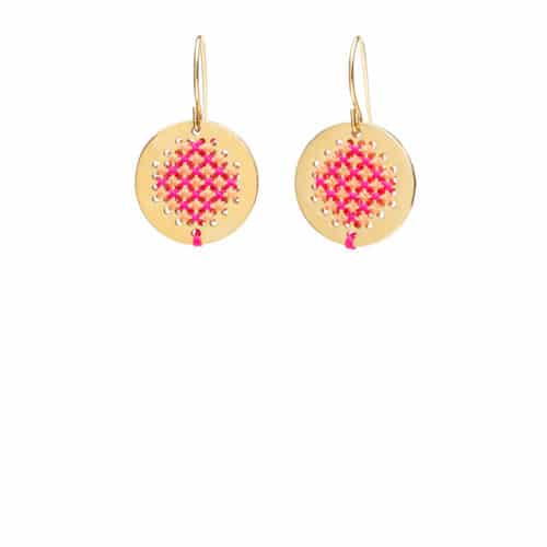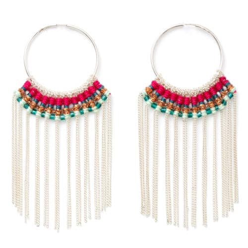 -    Boucles d’oreilles #15Coton, Laiton argenté, Lurex / Aubergine, Pêche, Turquoise, RoseRupture de stock