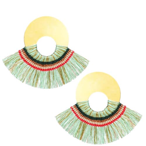 -    Boucles d’oreilles #14Coton, Laiton doré, Lurex / Vert pâle, Rose54€