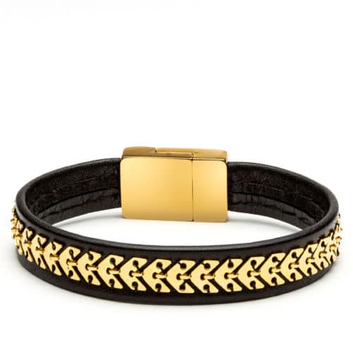 -    Bracelet #203Leather, Stainless steel, Golden metalOut of stock