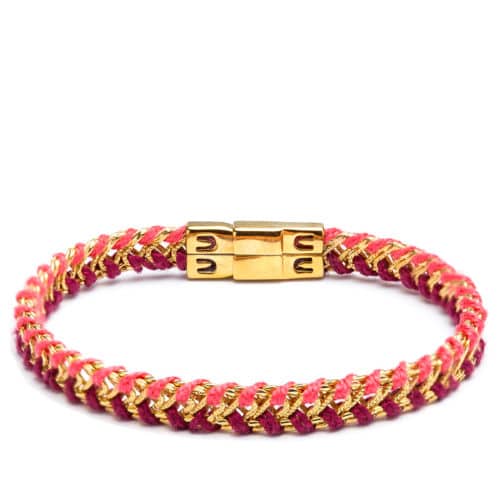 This bracelet is entirely made by hand in parisian workshops by specialized artisans. It is composed of a 1 micron, 24 karats gold plated chain, woven and then embroidered with DMC pearl cotton thread.