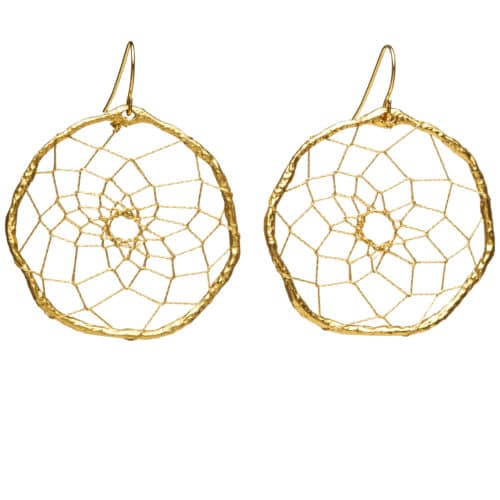 This pair of earrings is 24 karats gold plated brass. The thickness of the plating is 1 micron.