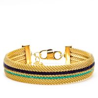 This bracelet is entirely made by hand in Parisian ateliers by specialized artisans. It is made out of cotton thread, twisted together wrapped with two 24 carats gold plated chains. This piece of jewelry can be worn as a bracelet rolled up three times around the wrist or as a necklace.