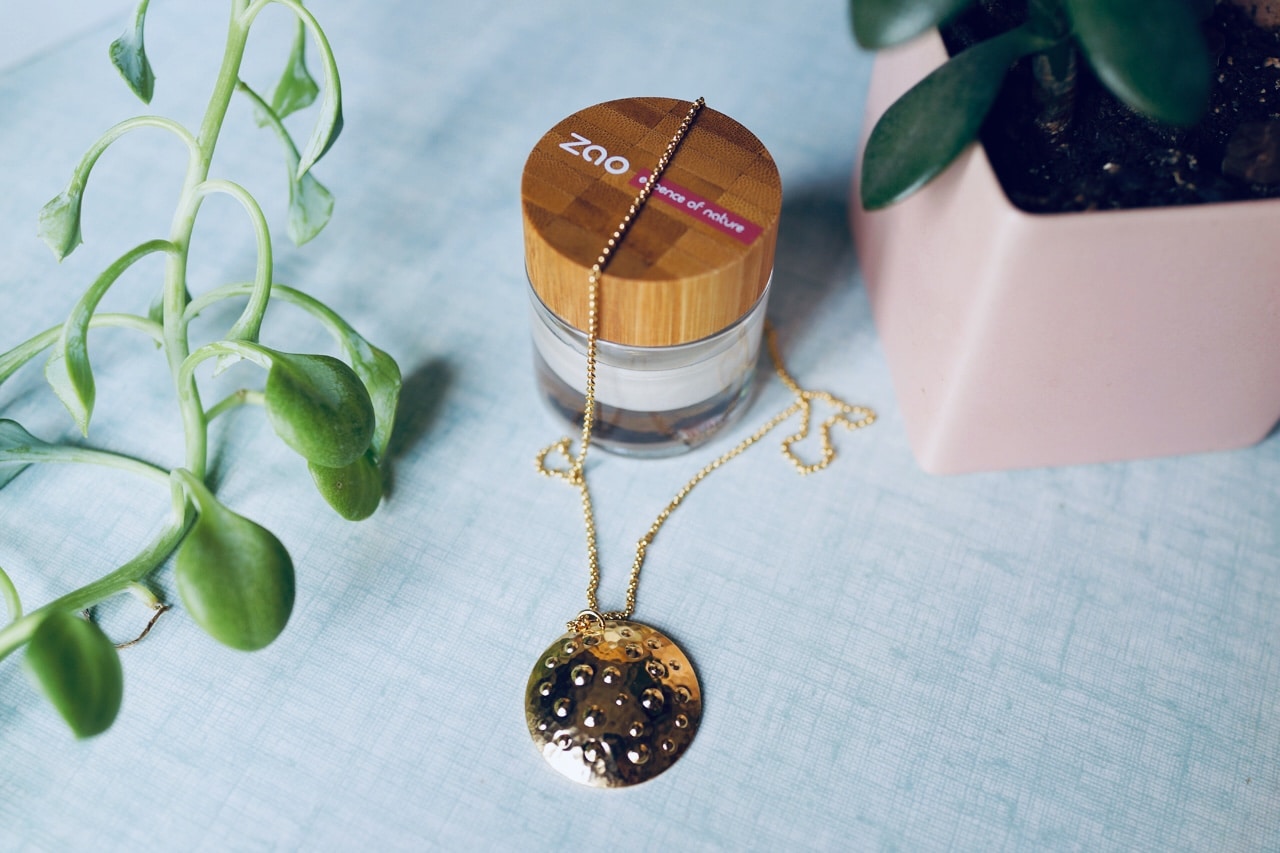 J’ai donc acheté, grâce à elle, deux produits de la marque Zao. C’est 100% naturel, bio, vegan, rechargeable, et naturel. D’ailleurs, ils ont plusieurs labels bio, le top du top, et en plus, c’est joli. Les boîtes en bambou sont vendues dans des petits sachets en coton.