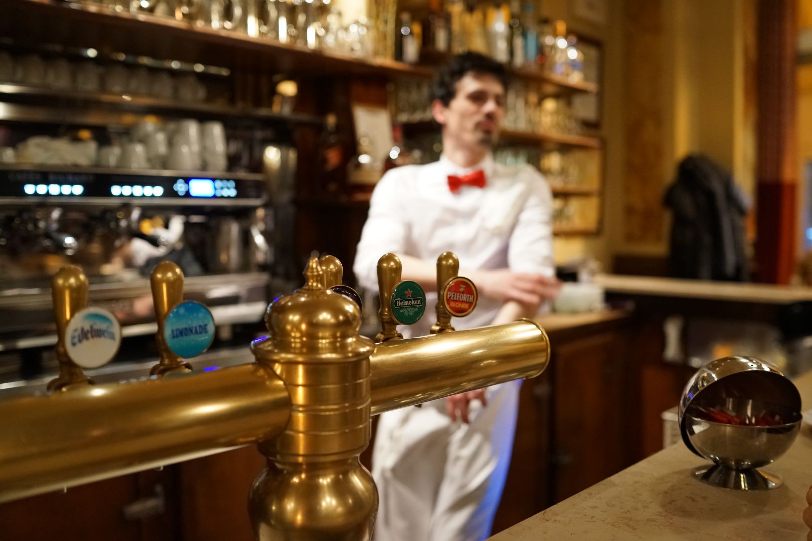 Ce soir là, j’avais mon appareil photo avec moi et j’ai canardé les serveurs. Il y en avait un qui avait une moustache incroyable à la Dali et qui semblait sortir tout droit d’un roman d’Emile Zola. J’ai essayé de le prendre, mais je n’ai eu que son gilet.