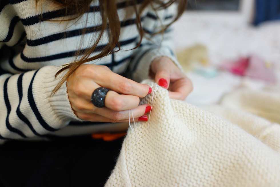 J’avais ce pull dans mes affaires et cela faisait un bon moment que je voulais lui rajouter un petit truc. J’ai tant de choses (je possède une véritable mercerie chez moi), que ça n’est pas le prix qui m’embarrasse (car il faut savoir que le prix du bouton bas de gamme, dans n’importe quelle mercerie, coûte le prix de 3 macarons la Durée), mais plutôt le choix énorme qui est, en effet, une véritable liberté, mais paradoxalement une grosse contrainte pour une personne indécise comme moi, et qui, de surcroît, procède par élimination. C’est donc un processus assez long que je remets toujours au lendemain, car comme vous vous en doutez, éliminer un élément quand il y en a deux est une chose, en éliminer 9999 quand il y en a 10000 est une autre chose.