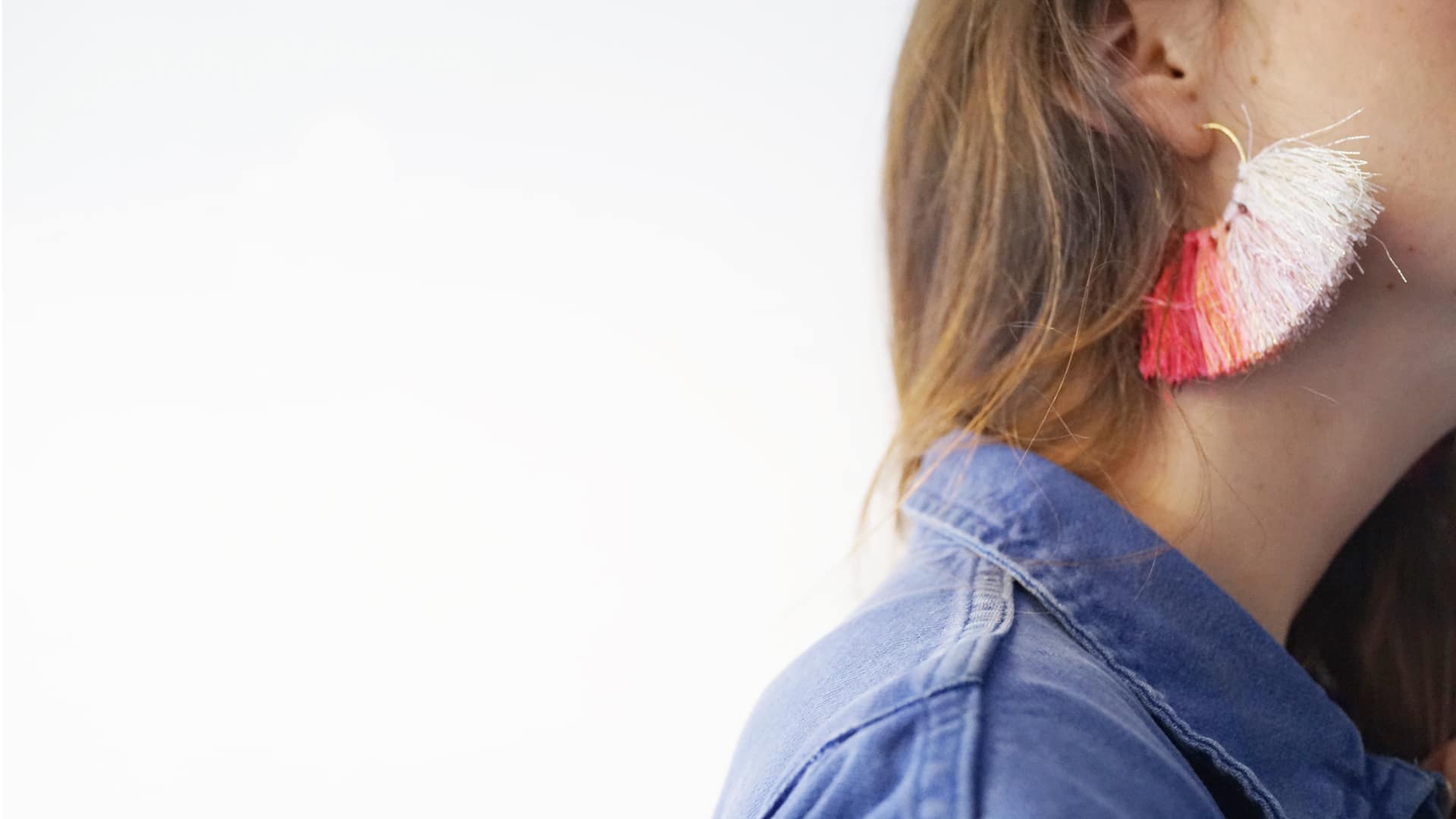 Toutes les pièces réalisées pour faire cette paire de boucles d’oreille (fil compris) ont été achetées en France. Les fils à coudre utilisés pour réalisés les pompons sont, pour la plupart, des fils de la marque française DMC ou de la marque allemande Gutterman. Le plaquage et le montage ont été effectué dans des ateliers parisiens.