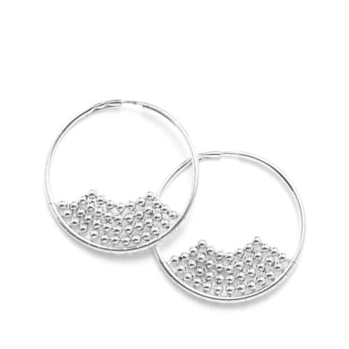 Cette paire de boucles d’oreilles est en laiton argenté. L’argenture apposée est de l’argent 925 (dit argent massif) sur une épaisseur de 10 microns.