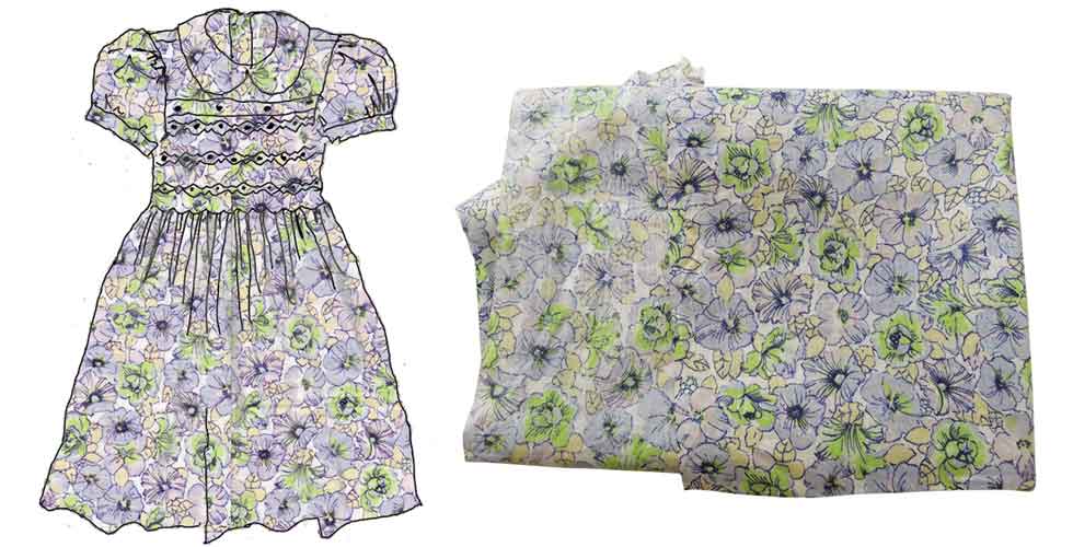 Voici une robe à smocks que je portais lorsque j’étais petite et dans laquelle je ne rentre plus (ah bon!). Mais le tissu est si joli, et j’aime tellement les smocks que je ne l’ai pas laissée pourrir au fond d’un placard, ni refilée à une petite nièce ou cousine. Comme il est tard et que je me lève très tôt demain pour aller récupérer mon tout nouveau portable que j’ai oublié par terre au gymnase tout à l’heure (si quelqu’un ne me l’a pas déjà embarqué), je vous raconte demain comment je l’ai réutilisée.